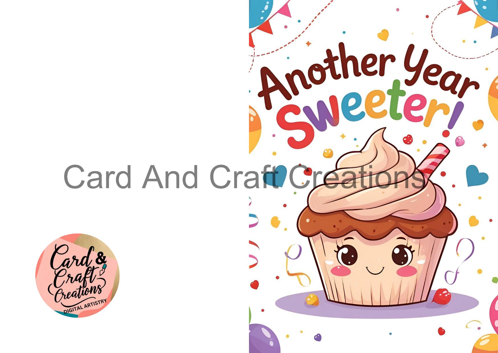 A cute, colorful cupcake-themed card with confetti and a cheerful message — a fun way to celebrate a sweet birthday.