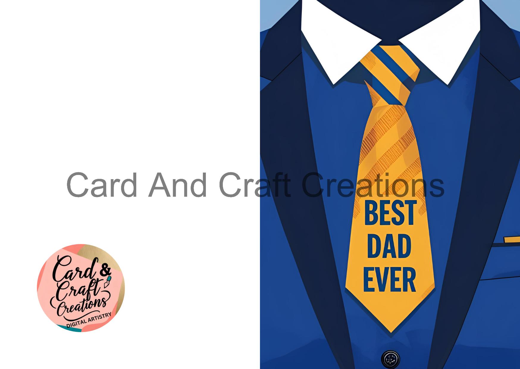 Celebrate your dad in style with this bold and classy Father’s Day card! Featuring a sharp navy suit and a golden tie that says “Best Dad Ever,” this design is perfect for the father figure who always dresses to impress.