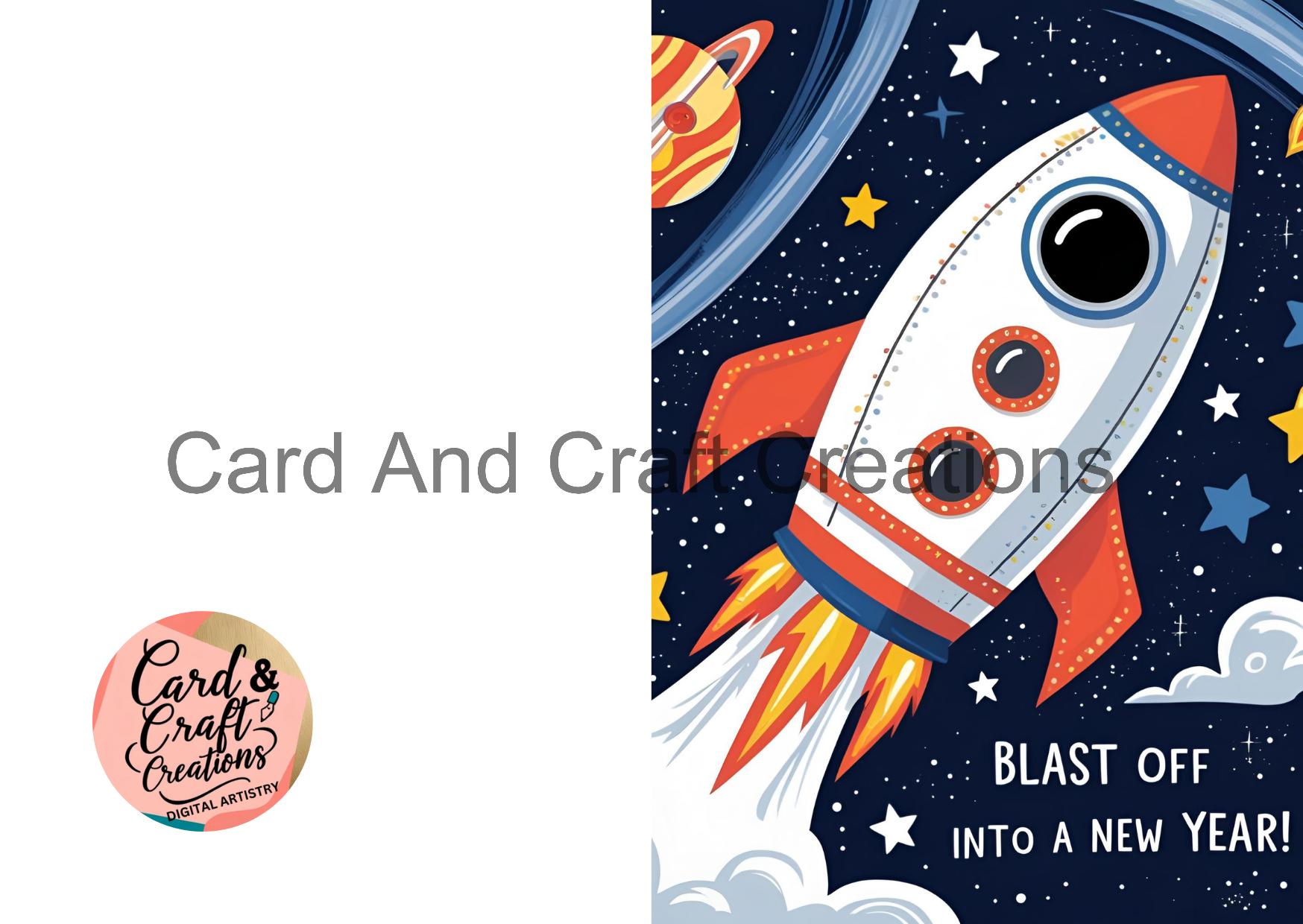 Blast Off Into a New Year Birthday Card
