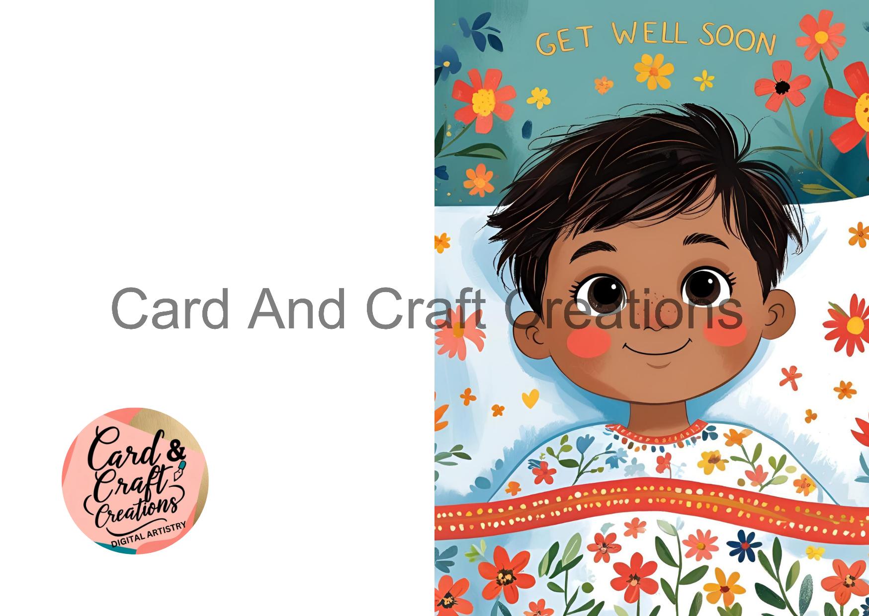 This playful illustration card features a smiling boy surrounded by flowers and cheerful colors, carrying the warm message “Get Well Soon”. Perfect for kids, friends, or anyone needing encouragement. Delivered as a digital file, it’s convenient, printable, and a kind way to send comfort.