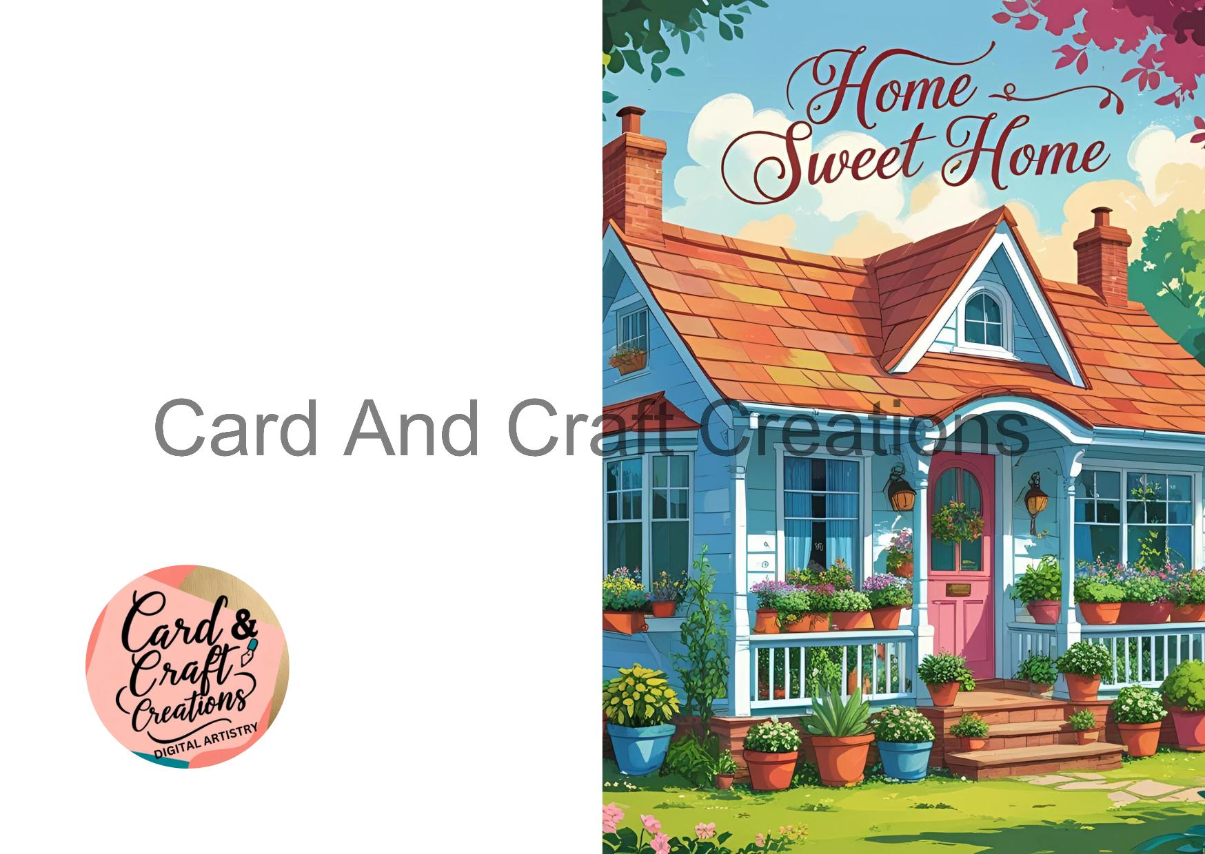Bright, cheerful, and full of charm, this card showcases a cozy cottage surrounded by potted blooms. A whimsical way to welcome someone into their new happy place with the classic message: “Home Sweet Home.”