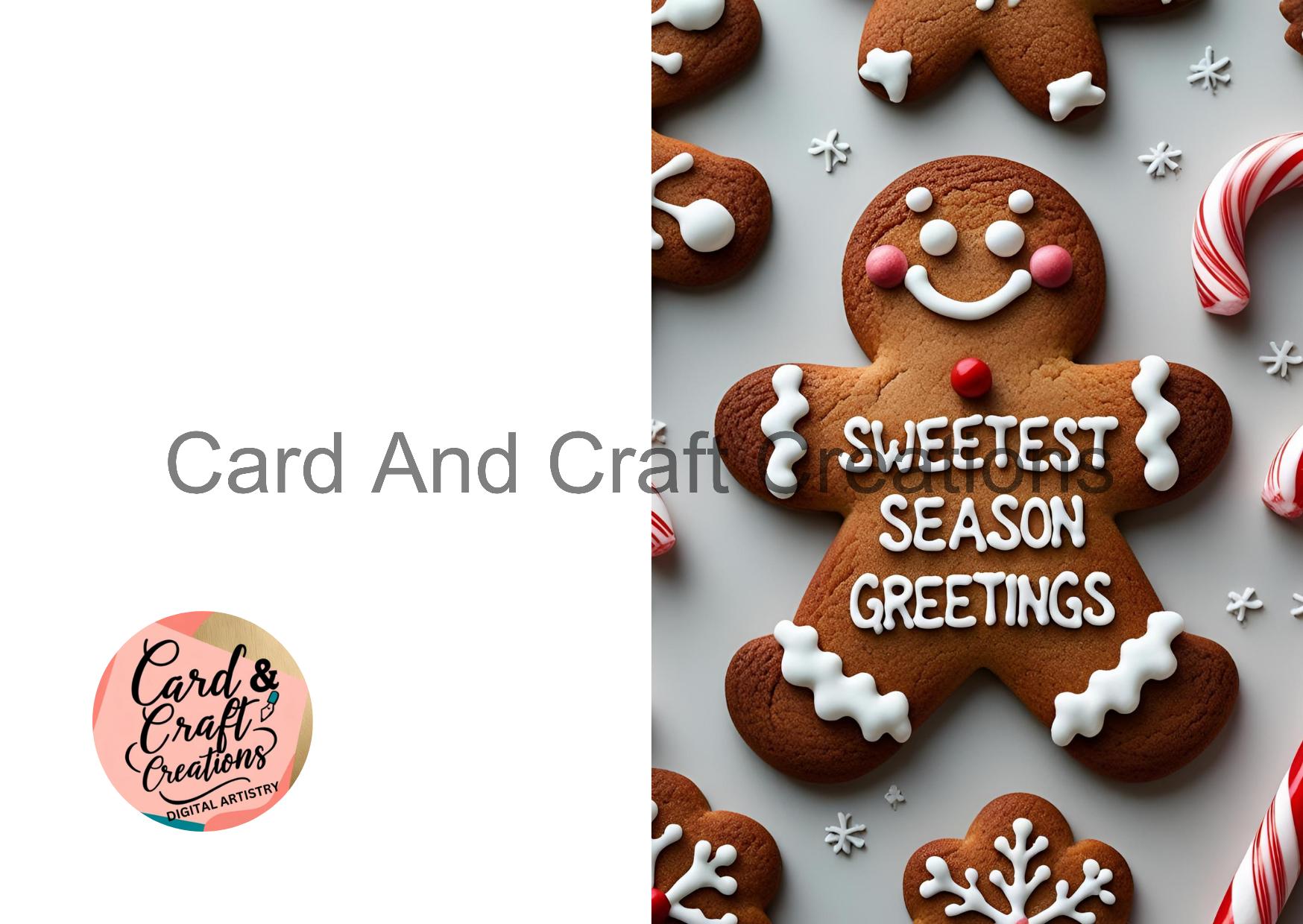 Send a smile with this joyful gingerbread man card decorated with icing and surrounded by candy canes. A cheerful treat for sweet holiday wishes!