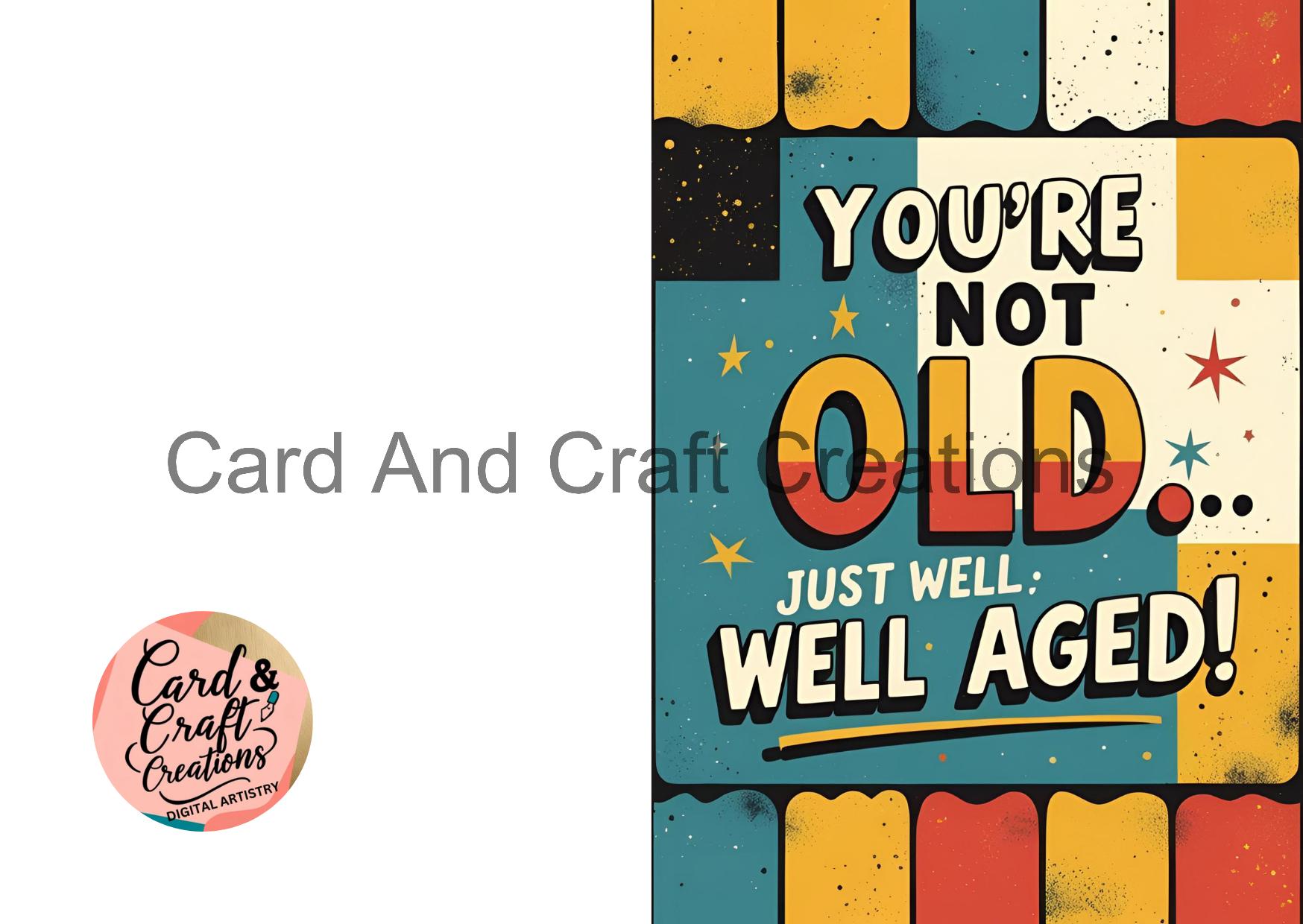 A funny retro-style birthday card with the phrase 'You’re not old… just well aged!' — a great choice for milestone birthdays.