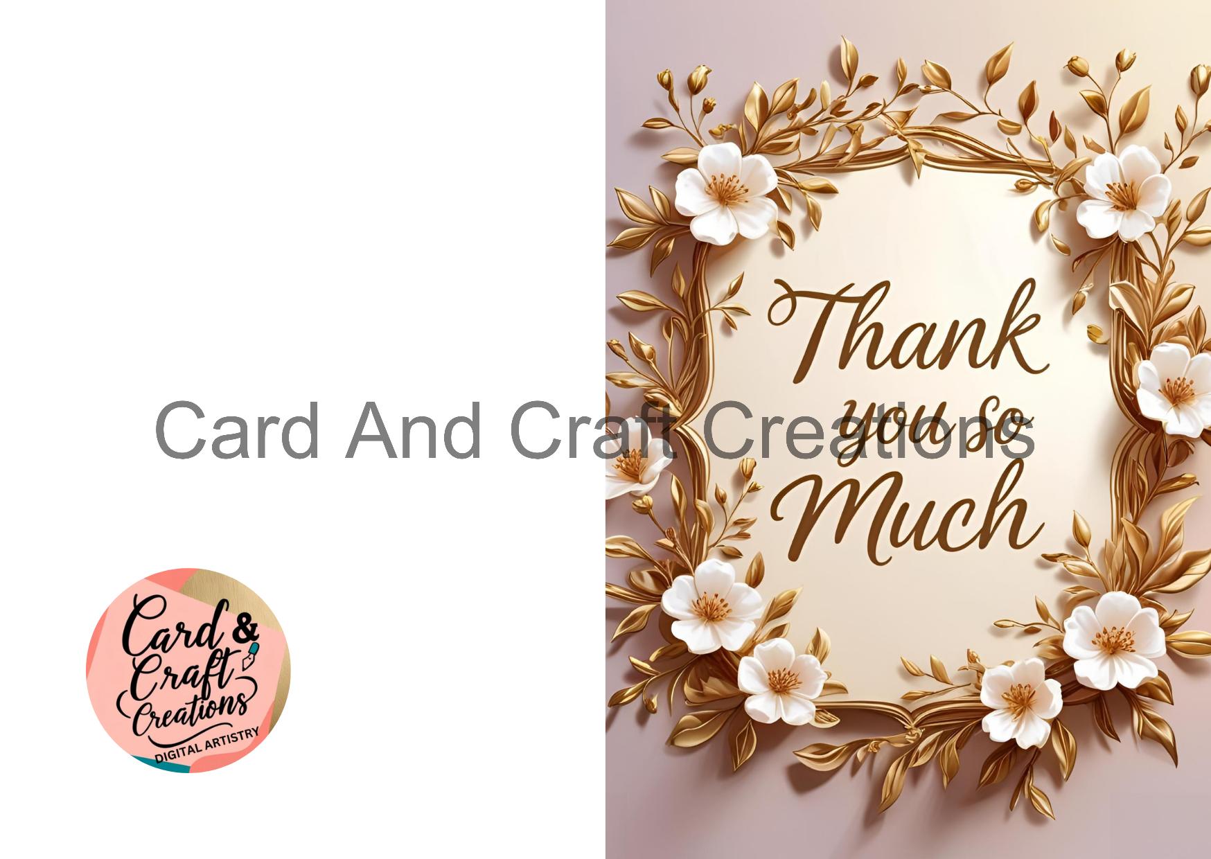 A stunning thank you card with a wreath of golden leaves and white flowers encircling a warm message of appreciation.